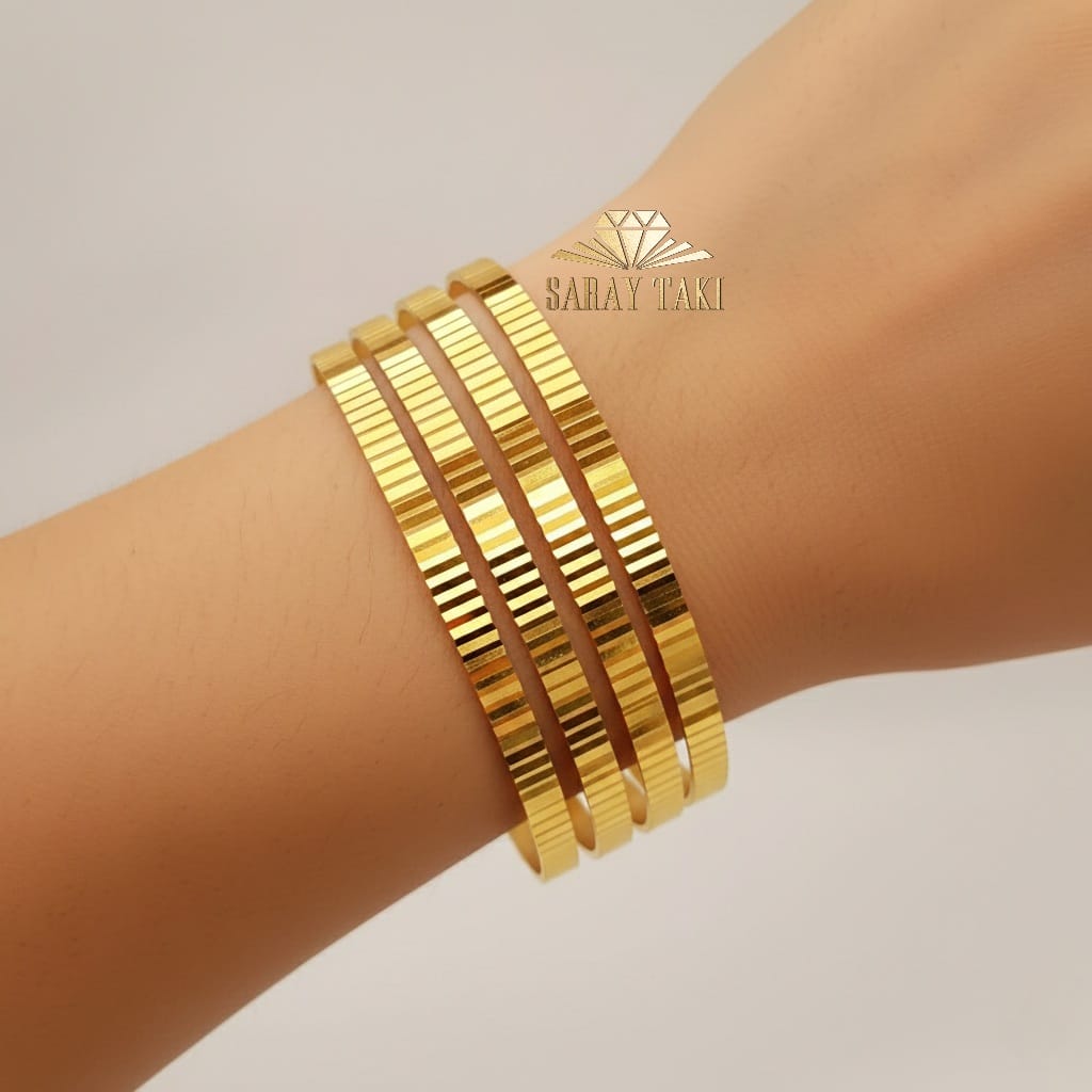Altın Kaplama 5mm Çizgili Ray Bilezik 0049