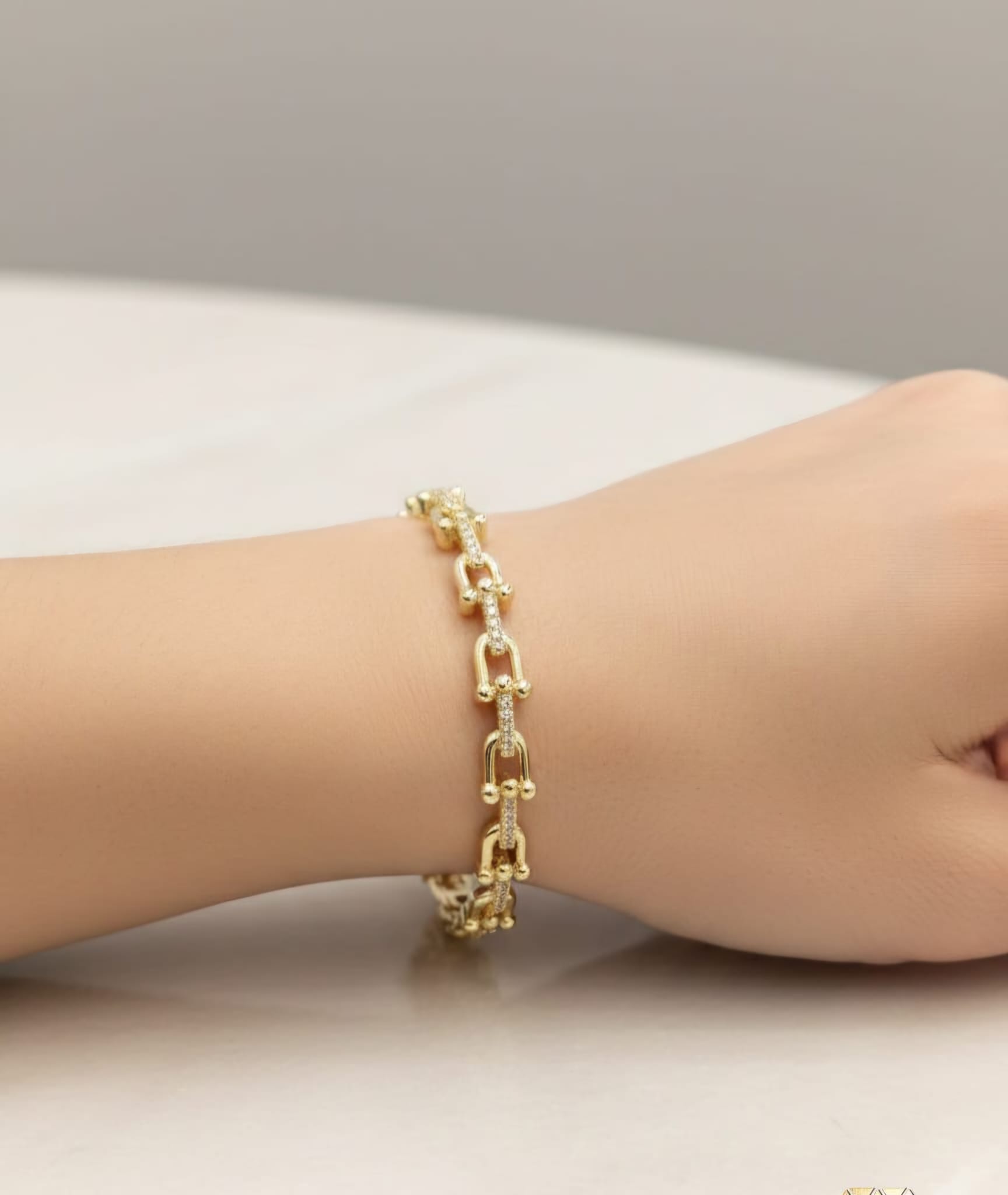 - 14 AYAR ALTIN KAPLAMA TAŞLI KELEPÇE BİLEZİK